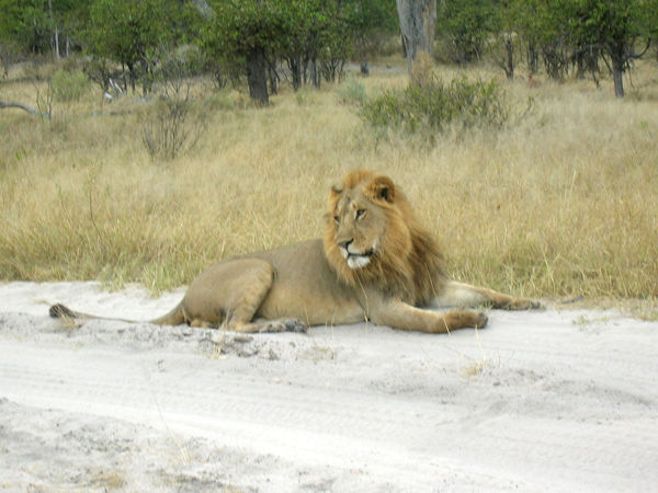 of dust thrown up by oncoming vehicles. Nearing the Moremi gate we had our