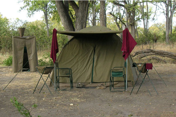 Our safari days started with an early morning wake up in our tent where we'd slept warmly under wool blankets. Breakfast was at a table under the trees, joined by Mike and Bailey. Morning game drive began around 7:30. We would lumber over sand tracks and through deep puddles of standing water, stopping to watch animals we encountered along the way. Mike was a knowledgeable and kind safari guide with an engaging sense of humor. His insights about animal behavior and his willingness to share his progress towards becoming a highly licensed safari guide were just two of the unexpectedly wonderful aspects of our trip. Morning tea, served out of a thermos and accompanied by biscuits, balanced on the hood of the truck, happened each morning about 11:00. Around 1:00 or 1:30, we would make our way back to camp, eat lunch and shower in our canvas stall under a bag of water that had been heated on the fire. One of our favorite Mike stories was of a lady on another safari who was just beginning to enjoy her bush shower when she suddenly ran out of water. Looking up in puzzlement, she saw an elephant trunk reaching over the canvas wall sucking up the last of her water. Mike never said what happened after that. His advice to us was if you hear a noise in camp, don't unzip your tent and stick your head out. Otherwise you would be safe.