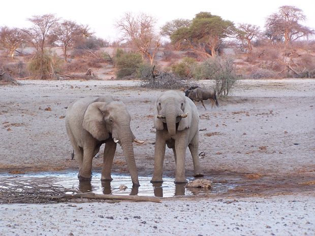 One freshwater hole had elephants hogging it for most of the day, only to move off to allow other pachyderms to partake, but not before playfully chasing off brazen wildebeest or zebra. We spent good portions of our time parked in front of this spot, watching the animals interact--all too thirsty to care that we were there.