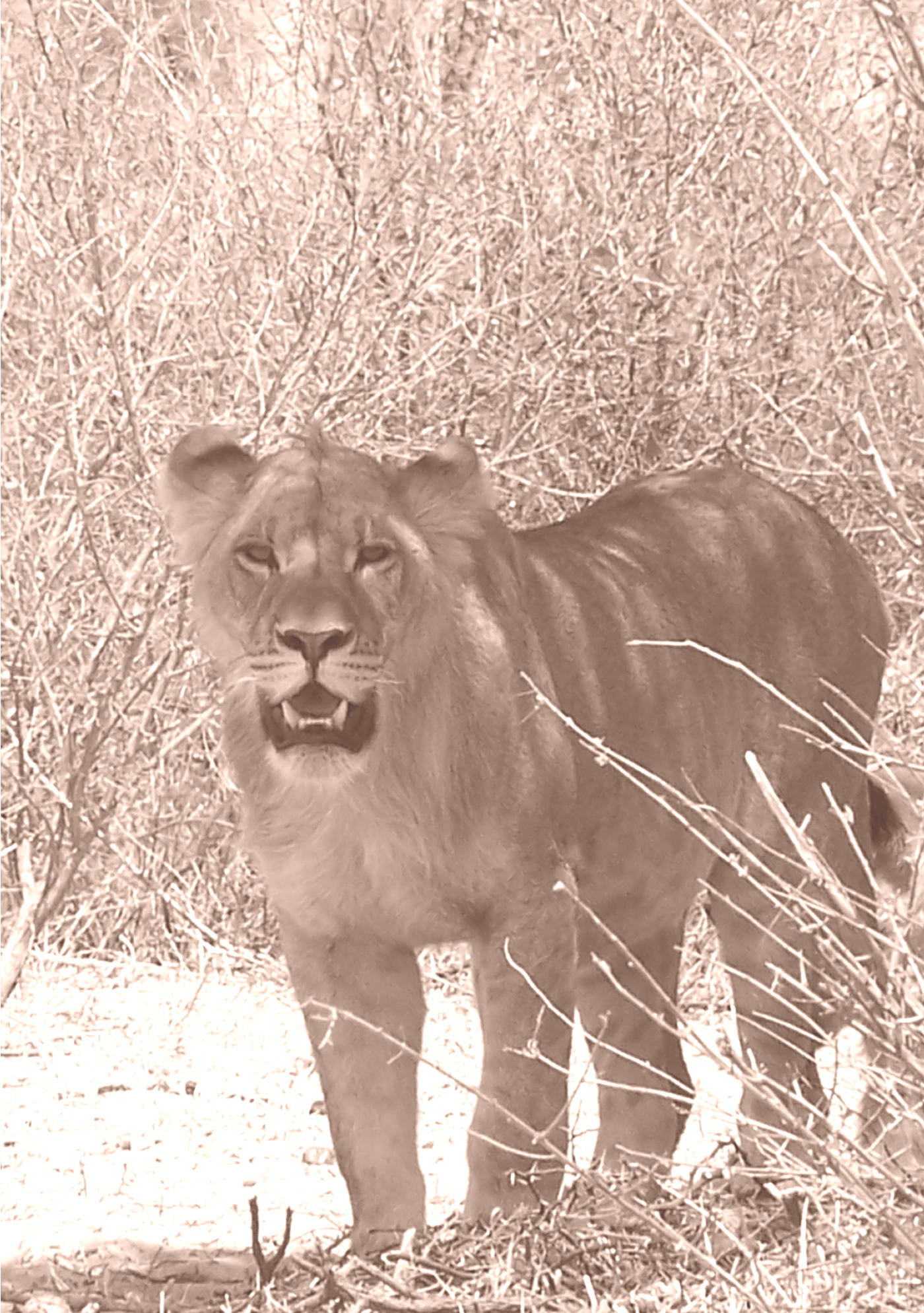 Peter starts to unzip the tent. "What are you doing?" I spat out in total panic. "The lion was just here."